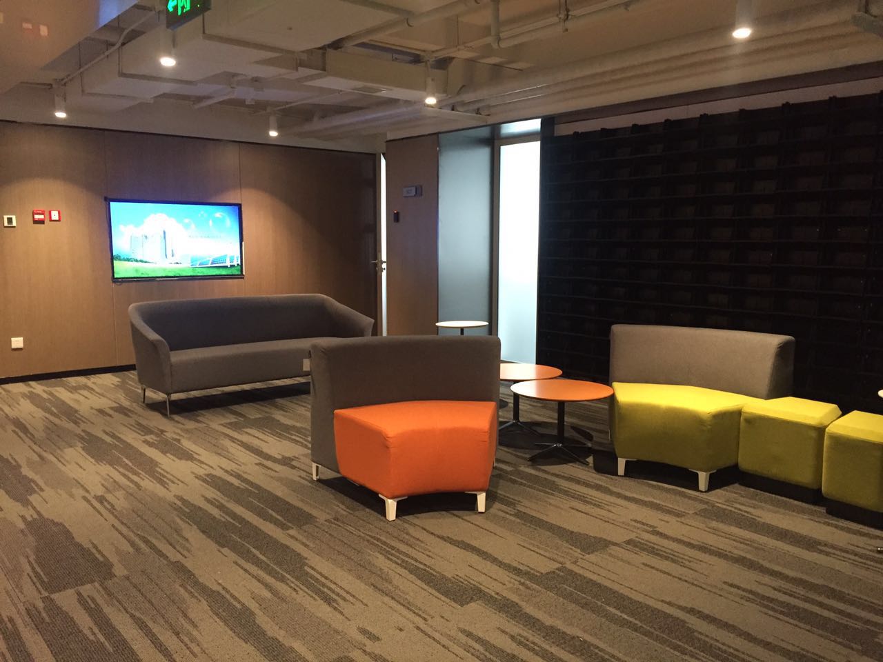 休息區(qū)整體以暖色調(diào)為基調(diào),由顏色明快的沙發(fā)構(gòu)成休息區(qū)主體,使員工可以在工作之余愜意的聊天,喝茶,原來工作也可以如此云淡風(fēng)輕。