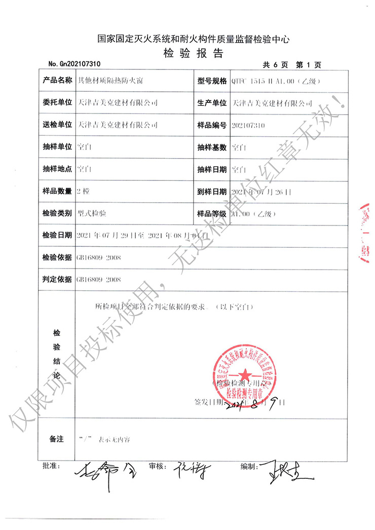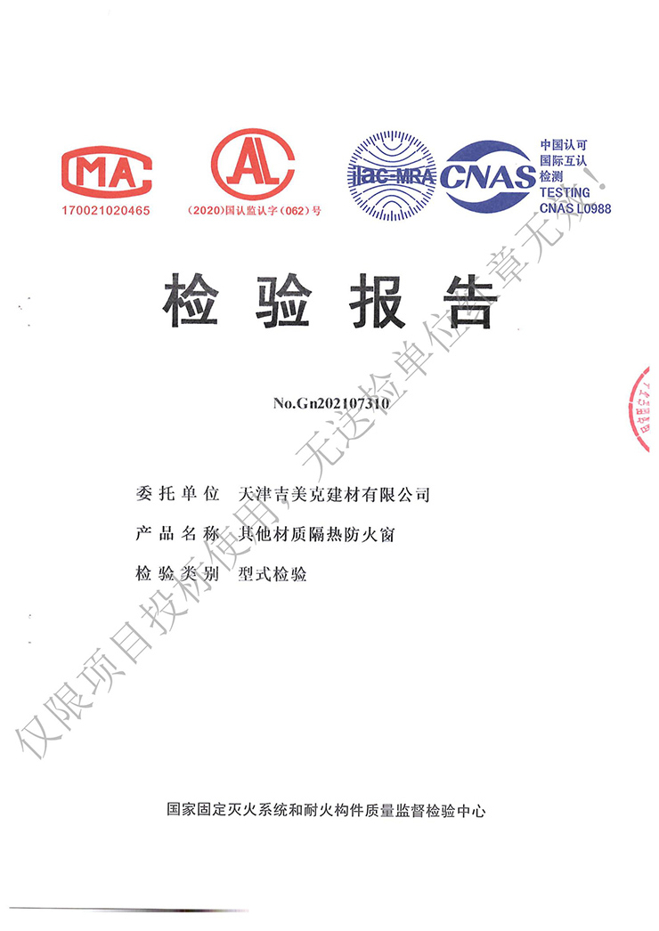 吉美克丨其他材質(zhì)帶開啟防火窗通過防火檢測 |