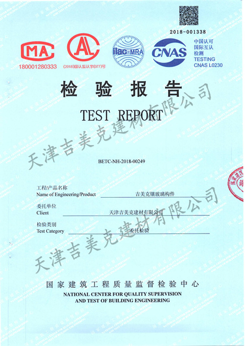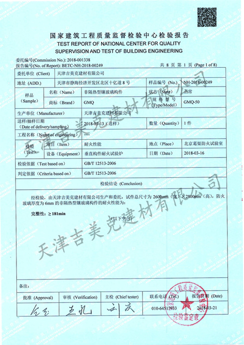 天津吉美克建材有限公司,作為專業(yè)的防火幕墻生產(chǎn)廠家,在保證產(chǎn)品質(zhì)量的同時不斷創(chuàng)新研發(fā),近日我司自主研發(fā)的非隔熱鑲玻璃構(gòu)件已通過181分鐘耐火檢測,接受真正的行業(yè)考驗。