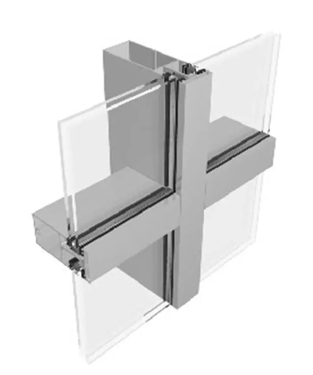 “明框”指將玻璃板鑲嵌在明框內(nèi),構(gòu)成四邊都露出鋁框幕墻構(gòu)件,再將其鑲在橫梁立柱上,橫梁立柱可見,形成了水平和垂直的格線。如圖左圖,右圖