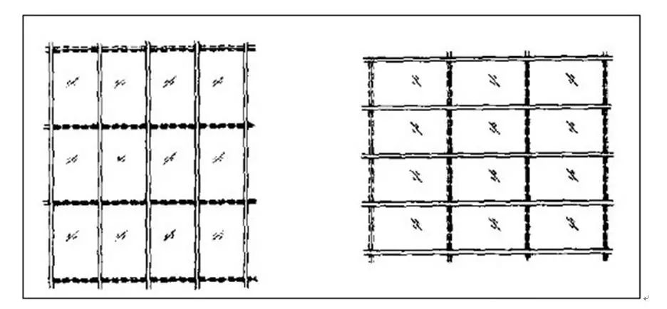 “半隱框”是將玻璃兩邊對(duì)嵌在鋁框上,另外兩對(duì)用結(jié)構(gòu)膠粘結(jié)在鋁礦上,立柱外露橫梁被擋住稱為豎框橫隱,形成垂直的格線;橫梁外露立柱被擋稱為橫框豎隱,形成水平的格線。如下圖所示: