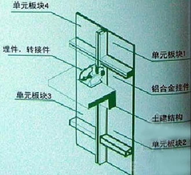 單元式幕墻是指在工廠將骨架和板材預(yù)拼裝成一定大小的安裝單元,再運(yùn)至建筑現(xiàn)場(chǎng)逐個(gè)安裝,由于是在工廠安裝,可用各種構(gòu)圖組合安裝單元,設(shè)計(jì)出不 同風(fēng)格的異形幕墻以顯示出藝術(shù)效果。如圖1-6,是一塊典型的單元式幕墻。