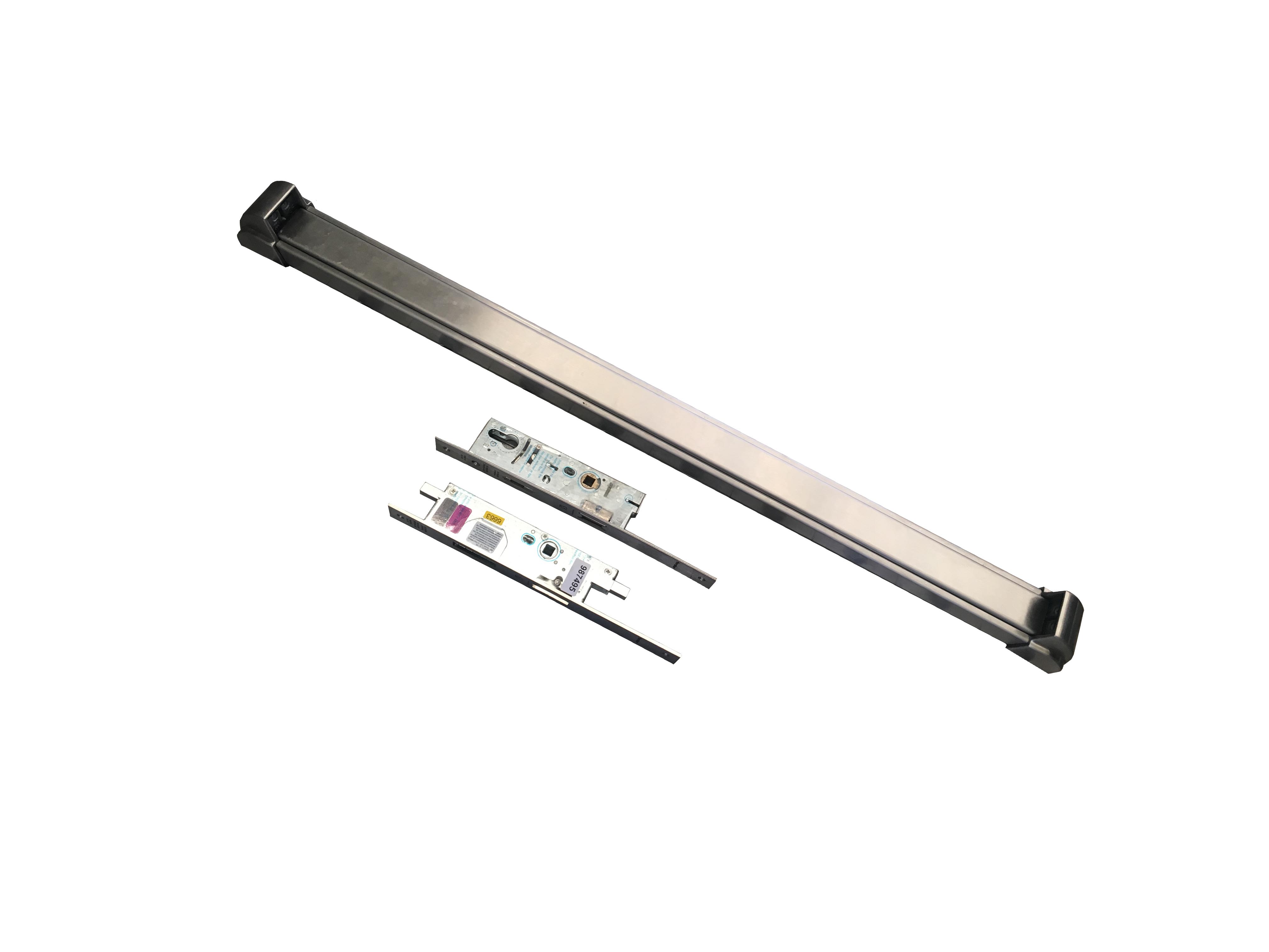 門內(nèi)使用瑞士Forster進口推杠逃生鎖,室內(nèi)和室外用鑰匙鎖上,鎖在外面只能用鑰匙打開,在室內(nèi)推推杠鎖不管真扇還是假扇都可以打開,且不用鑰匙。